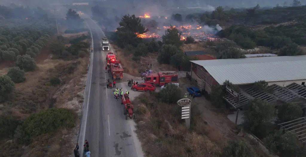 Yangın, Ildır Mahallesi’nde henüz belirlenemeyen bir nedenle başladı. Rüzgarın etkisiyle kısa sürede yayılan yangın, ormanlık alanlara sıçradı. İhbar üzerine bölgeye İzmir Orman Bölge Müdürlüğü ekipleri sevk edildi.